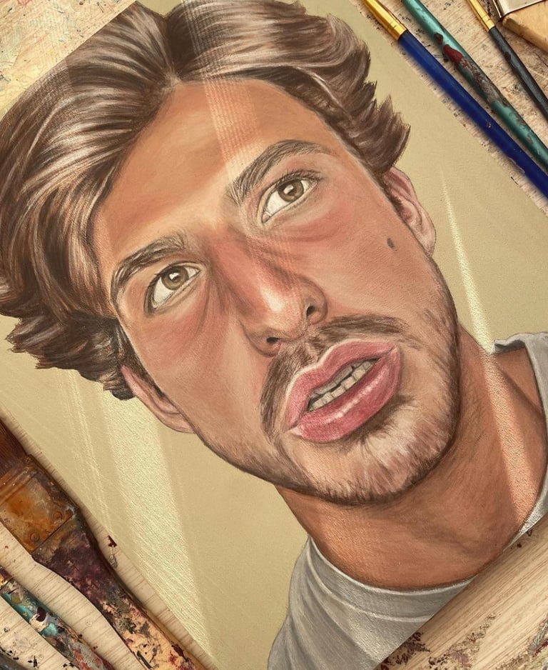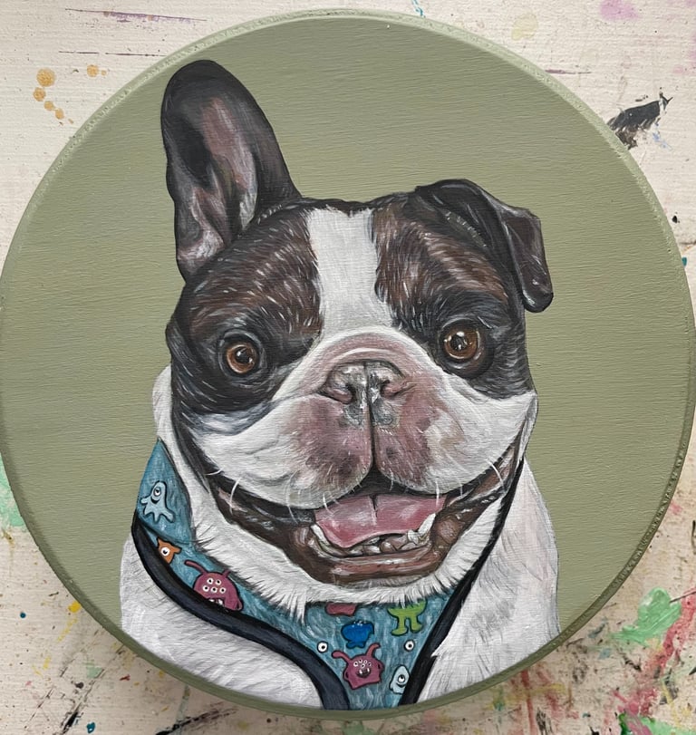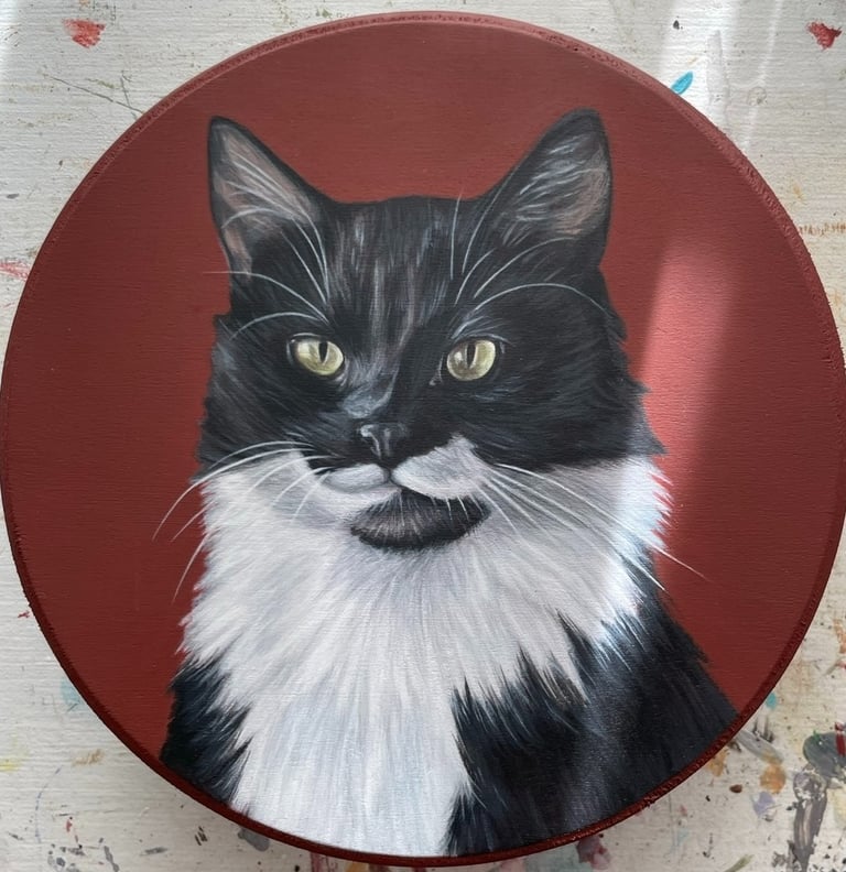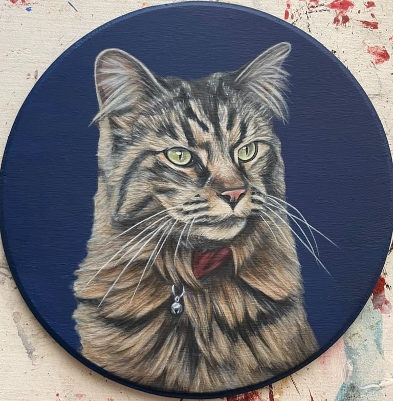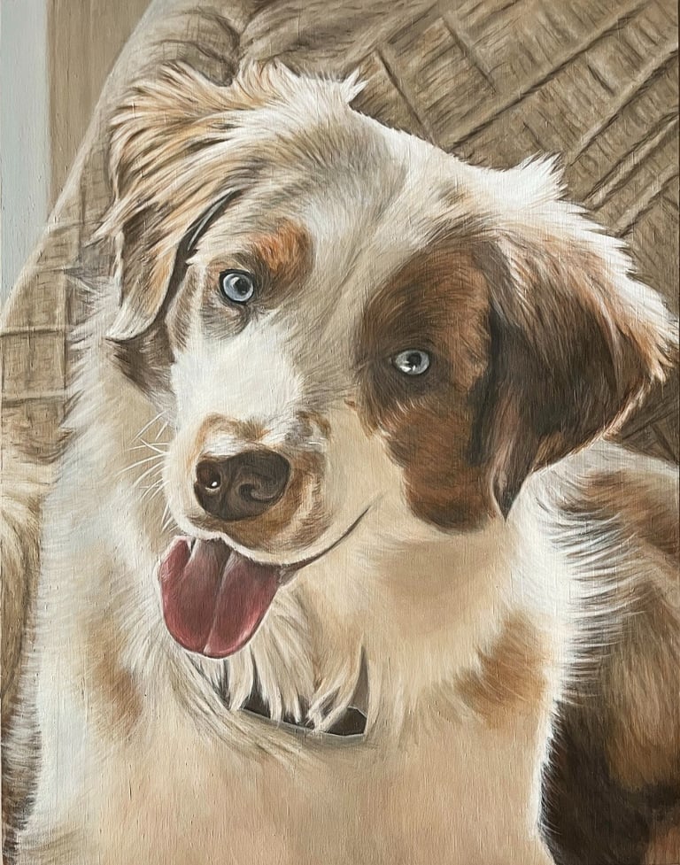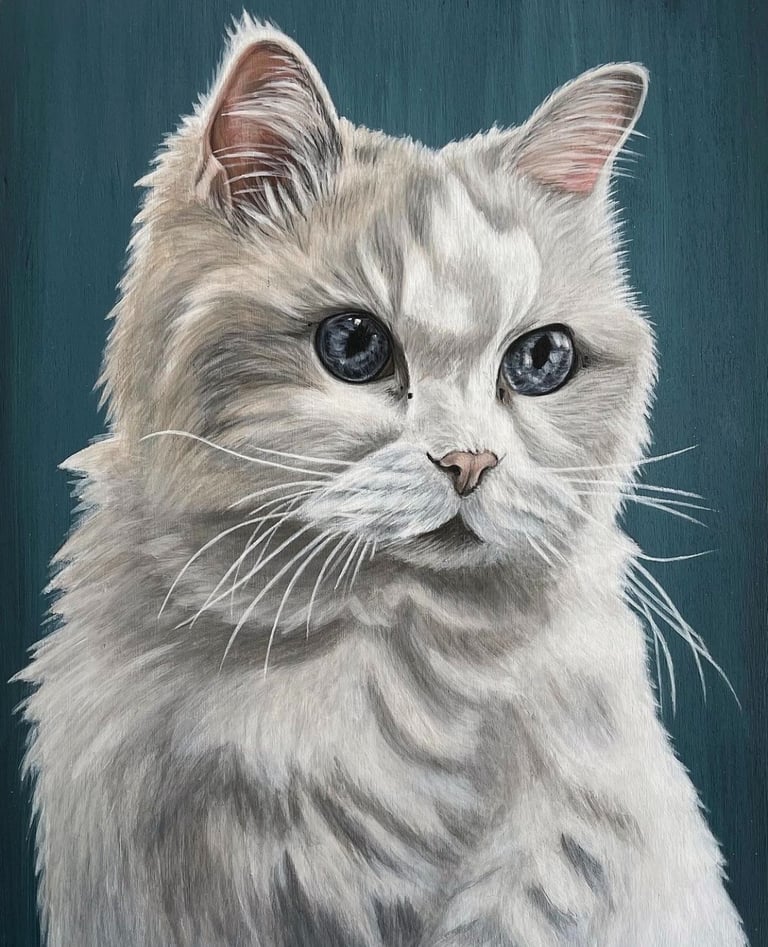 Kate spent 5 years of her life in-and-out of hospitals. In order to keep herself mentally occupied during that time, she studied the light on objects she could see. Her eye for realism was developed through that practice, which enables her ability to paint portraits. After years of observing what placement and values of light composed different images, she simply sat down and started painting portraits. Kate started with painting cats and quickly branched out to other animals and people. Her passion for painting portraits is driven by learning to focus on light.